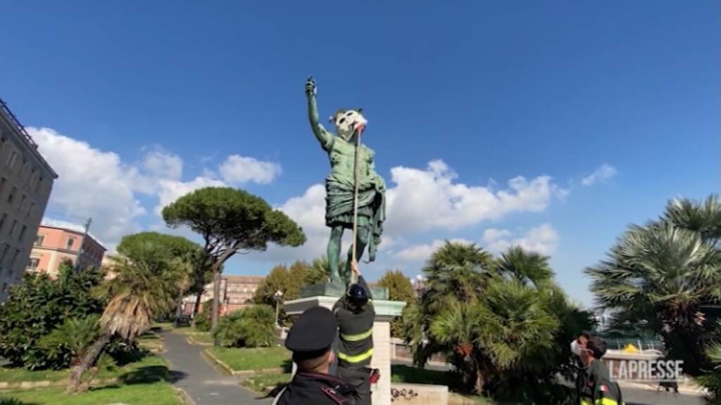 (LaPresse) – Sono state rimosse questa mattina dai carabinieri della compagnia Napoli Centro e dai vigili del fuoco le maschere di cartapesta installate durante la notte sulle statue del centro della capoluogo partenopeo. “The voice OFF the Planet” è un’installazione attraverso la quale un’associazione ambientalista, Extinction Rebellion, incoraggia una presa di responsabilità in merito a tutto ciò che riguarda l’inquinamento e la crisi climatica. Le installazioni sono state sistemate nello stesso giorno in diverse città italiane.