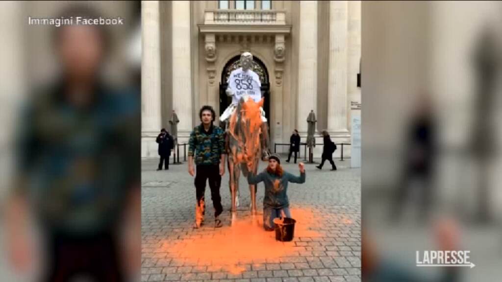 Ancora un blitz degli attivisti per il clima contro un’opera d’arte, questa volta a Parigi. Alcuni membri del gruppo Dernière Rénovation hanno imbrattato una statua di Charles Ray a Parigi. Ne hanno dato notizia sui social: “Aruanu, 26 anni, e Rachel, 20 anni, cittadini che sostengono Dernière Rénovation, hanno lanciato vernice arancione sulla statua di “Cavallo e Cavaliere” di Charles Ray situata alla Bourse de Commerce di Parigi. – si legge su Facebook – Questo 18 novembre, le azioni di resistenza civile si svolgono simultaneamente in tutto il mondo”.