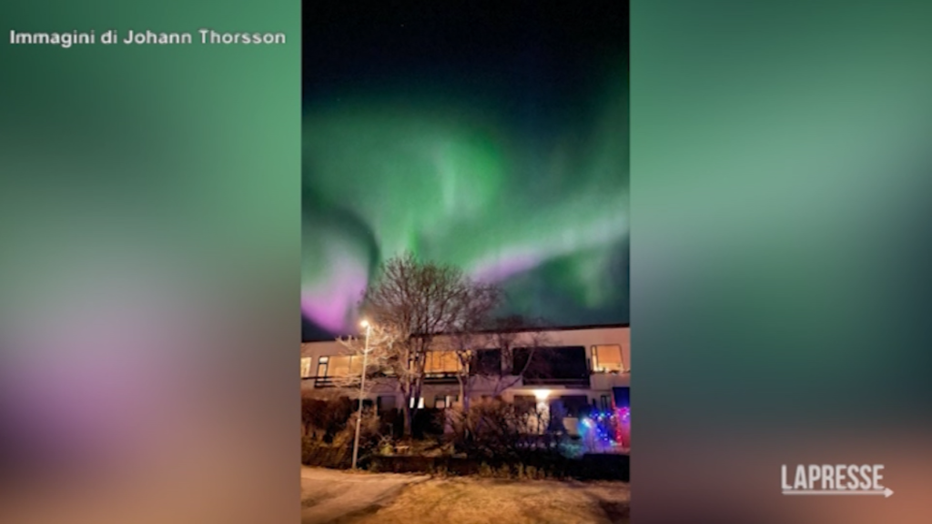 L’aurora boreale è tornata nei cieli di Reykjavik, in Islanda, con uno spettacolo unico che si manifesta soprattutto in autunno e inverno, tra novembre e febbraio. Un mix di luci verdi e viola ha illuminato la notte sopra i tetti della capitale islandese.