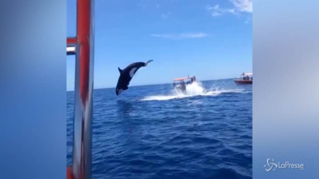 (LaPresse) Un branco di orche a caccia di delfini nella Bassa California, in Messico: alcuni turisti sono riusciti a riprendere l’esatto momento in un cui il cetaceo ha “speronato” in volo la sua preda, con uno spettacolare salto di oltre cinque metri. Le immagini sono subito diventate virali.