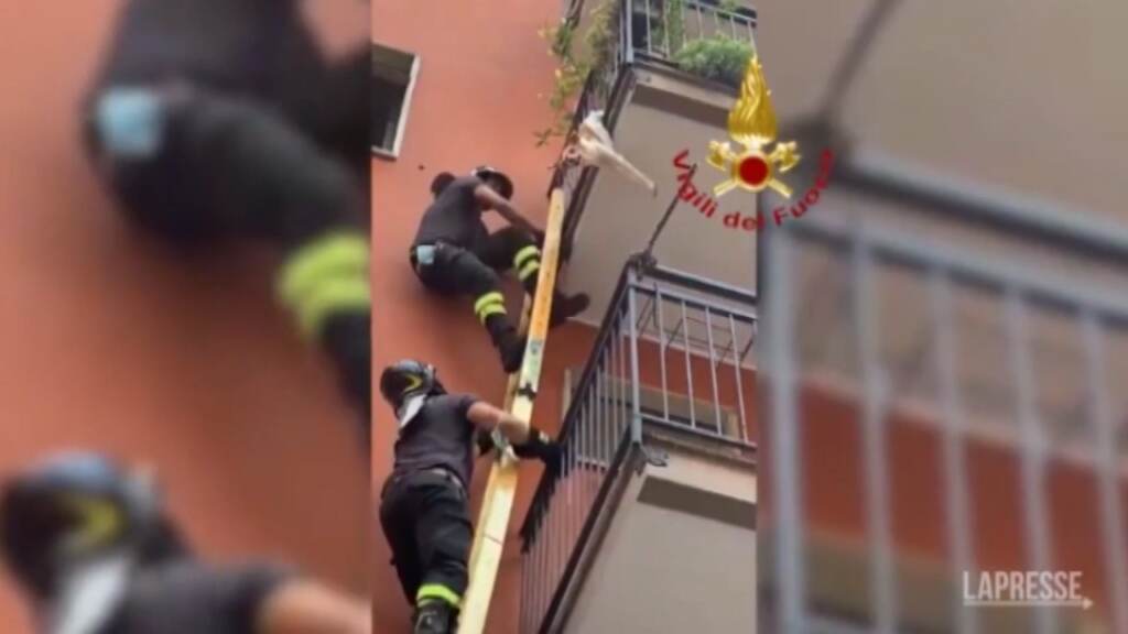 Paura a Milano per la proprietaria di un cagnolino rimasto incastrato nella ringhiera di un balcone con le zampe anteriori sospese nel vuoto. Per metterlo in salvo è stato necessario l’intervento dei vigili del fuoco, saliti al terzo piano dello stabile (in zona Lotto) con una scala. Gli stessi vigili hanno postato il video dell’intervento su Twitter. DISTRIBUTION FREE OF CHARGE – NOT FOR SALE