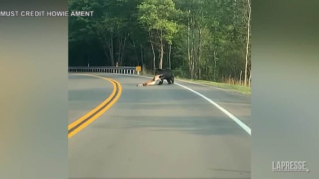 (LaPresse) Una coppia della Pennsylvania ha assistito a un’insolita scena mentre era in viaggio nella Foresta Nazionale Allegheny dello Stato Usa: un orso che trascinava per la strada un cervo, e poi fuggiva nel bosco con la sua preda.