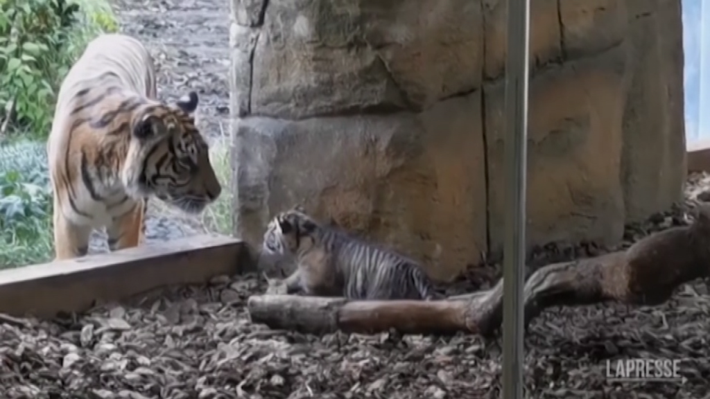 (LaPresse) Un cucciolo di tigre di Sumatra di un mese ha fatto i suoi primi passi allo zoo Zsl di Londra. Il cucciolo ha seguito la mamma Gaysha camminando intorno al recinto.