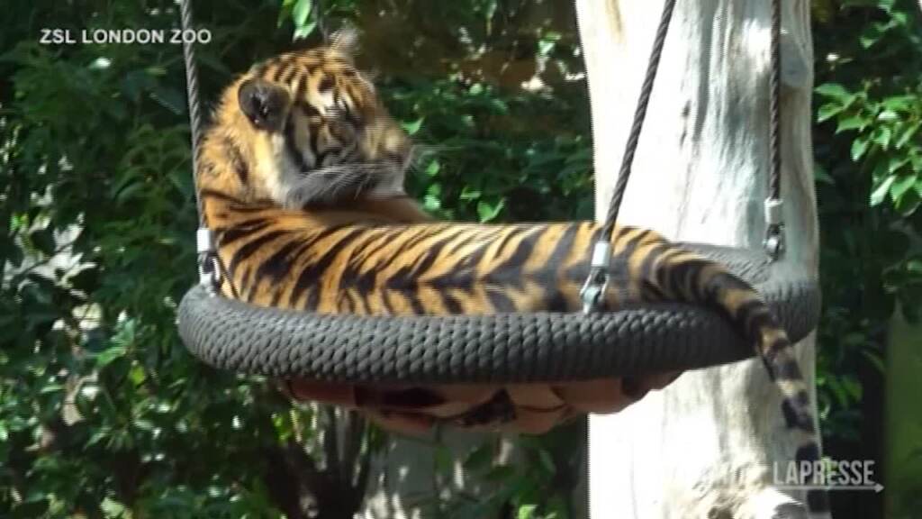 Scatenati i cuccioli di tigre di Sumatra dello zoo di Londra. I “piccoli” hanno esercitato le loro tecniche di equilibrio e salto su una nuova altalena personalizzata. I fratellini Zac e Crispin, che hanno da poco compiuto un anno, sono stati incoraggiati a usare le loro abilità naturali dai guardiani dello zoo, che hanno distribuito giocattoli e una scia di profumo di noce moscata e cannella attraverso il loro recinto fino alla resistente altalena, un bersaglio mobile su cui saltare. Le tigri di Sumatra sono la sottospecie di tigre più rara al mondo, con solo 400 esemplari stimati in natura.