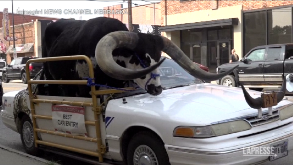 Un toro seduto a bordo di un’auto. E’ l’immagine che si è ritrovata davanti la polizia di Norfolk, in Nebraska, Stati Uniti il 30 agosto scorso: un toro Watusi su una Ford Crown Victoria. La macchina guidata da Lee Meyer è stata privata di metà del parabrezza e del tetto per far posto al suo animale, chiamato Howdy Doody. L’uomo ha percorso l’autostrada per 58 chilometri con un cancello per il bestiame attaccato al lato del passeggero per consentire al toro di essere legato. Il video, diffuso in rete, è diventato subito virale.