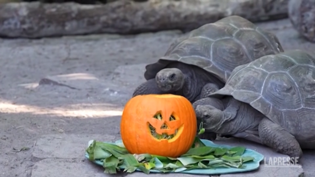 Le tartarughe delle Galapagos al Disney Animal Kingdom hanno ricevuto un regalo di Halloween speciale. I responsabili dello zoo – uno parchi a tema costruiti presso il Walt Disney World Resort di Bay Lake, Florida, a sud ovest di Orlando – hanno intagliato delle splendide zucche riempiendole con il cibo preferito dagli animali: erbe e piante di cui le tartarughe sono ghiotte. E gli esemplari hanno dimostrato di gradire il pensiero, divorando tutto. Quest’autunno verranno servite 200 zucche agli animali di ogni varietà di specie in tutto il resort.