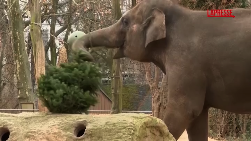 Alberi di Natale invenduti nel menù di giraffe ed elefanti. E’ l’idea dello zoo di Berlino che ha ricevuto gli abeti che sono rimasti nel magazzino dei venditori specializzati e selezioni. E così gli elefanti hanno strappato i rami con le loro proboscidi, mangiando il fogliame o spostandoli all’interno del loro recinto mentre le giraffe li hanno assaggiati mentre erano appesi ad alberi più alti.