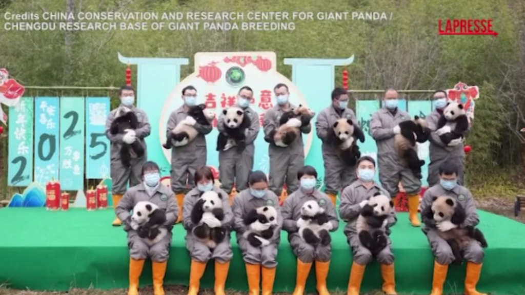 Circa 25 cuccioli di panda hanno fatto la loro prima apparizione pubblica nella provincia del Sichuan, nel sud-ovest della Cina, in occasione dei festeggiamenti per l’imminente Capodanno cinese. Tredici dei cuccioli provengono dal ‘China Conservation and Research Center for the Giant Panda’, mentre gli altri 12 dalla ‘Chengdu Research Base of Giant Panda Breeding’. I custodi hanno spalmato un po’ di frutto del drago alle zampe dei cuccioli, in modo che ogni animale potesse lasciare l’impronta su un’installazione. I cuccioli hanno poi posato per alcune foto in compagnia dei custodi, prima di giocare con alcune decorazioni dedicate al Capodanno.