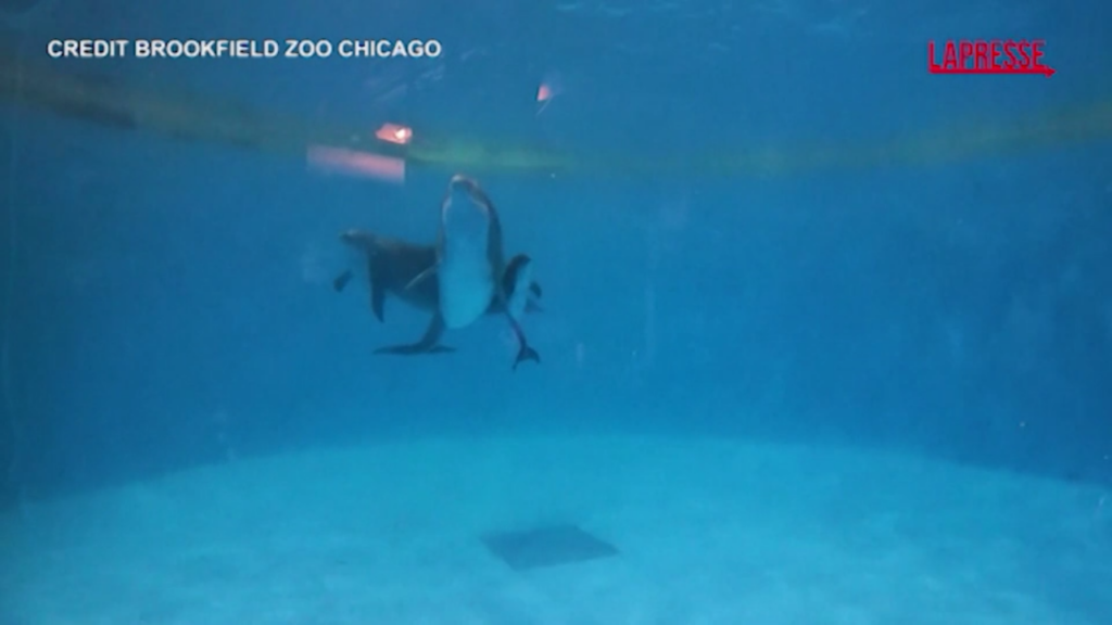Il piccolo delfino è nato sabato mattina presto allo zoo Brookfield di Chicago, mentre un team di veterinari monitorava e incoraggiava la mamma, che ha 38 anni e si chiama Allie. “Spingi, spingi, spingi”, si sente gridare un osservatore nel video diffuso sabato dallo zoo, mentre Allie nuota nella vasca con la piccola pinna caudale del piccolo che spunta sotto di lei. Poi il piccolo si libera e istintivamente si lancia verso la superficie della piscina per il suo primo respiro.