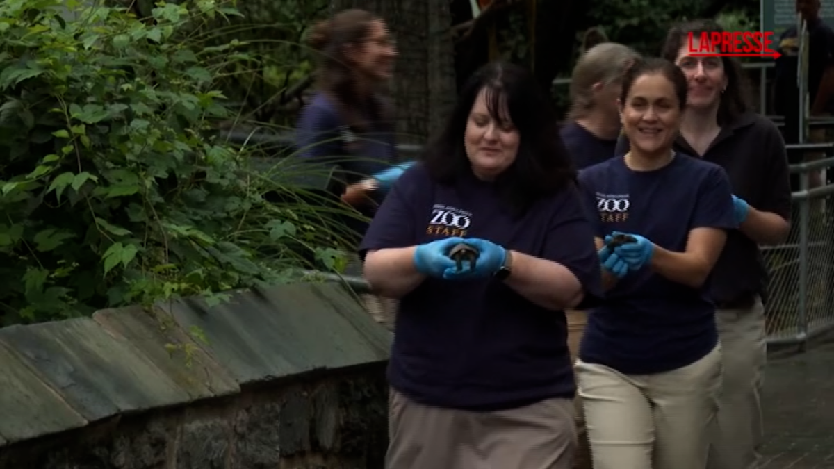 Sedici tartarughe occidentali di Santa Cruz in pericolo di estinzione, nate da genitori molto anziani, hanno fatto una passeggiata mercoledì in un evento dello zoo di Filadelfia, negli Usa, per mostrarsi ai visitatori. Gli specialisti della cura degli animali che hanno vegliato sui 16 esemplari fin da quando erano uova, hanno tenuto gli animali lungo un sentiero vicino all’habitat delle tartarughe dello zoo. Si dice che i piccoli mangino bene e crescano.
