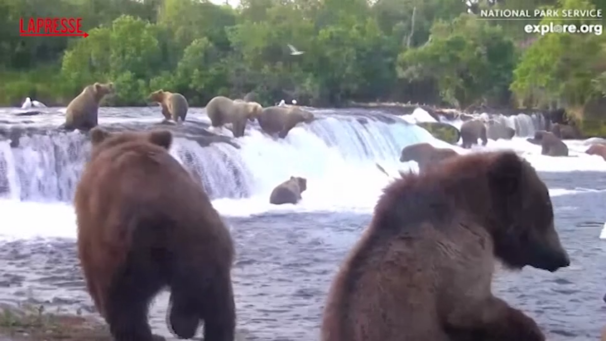 Al Parco Nazionale e Riserva di Katmai, in Alaska, è tutto pronto per la Fat Bear Week, l’evento annuale che si tiene tra la fine di settembre e l’inizio di ottobre per “celebrare” gli orsi bruni che si apprestano ad andare in letargo. La Fat Bear Week è un popolarissimo concorso, aperto al voto online, che elegge l’orso più grasso dell’anno. L’evento principale con gli orsi adulti inizia la prossima settimana, ma giovedì 18 settembre si tiene quello che il National Park Service chiama un “antipasto di orsi paffuti”, Fat Bear Jr.