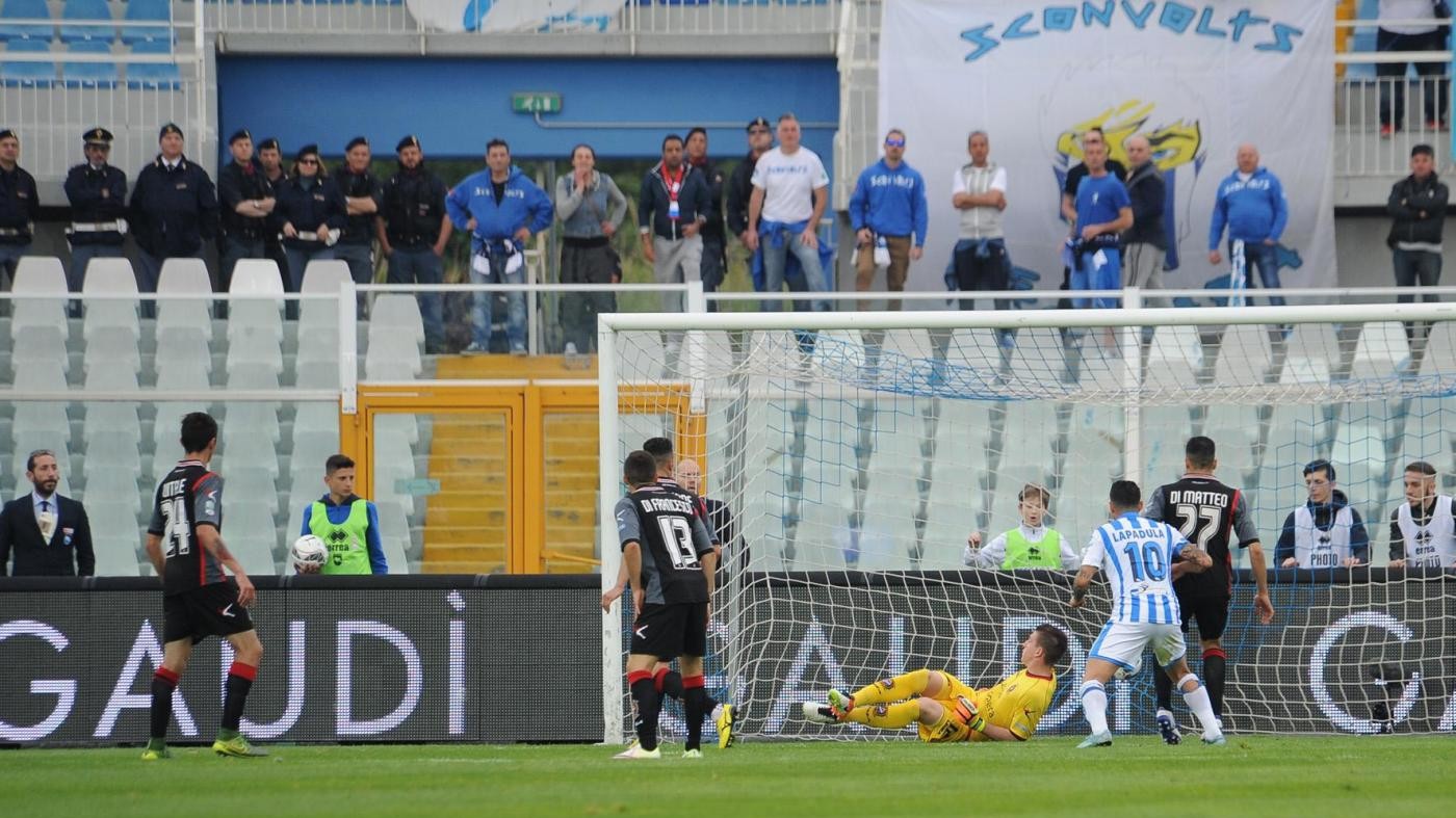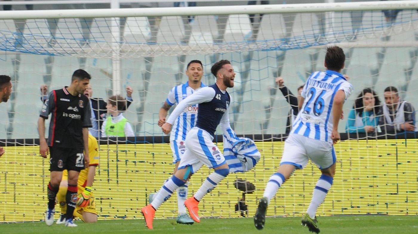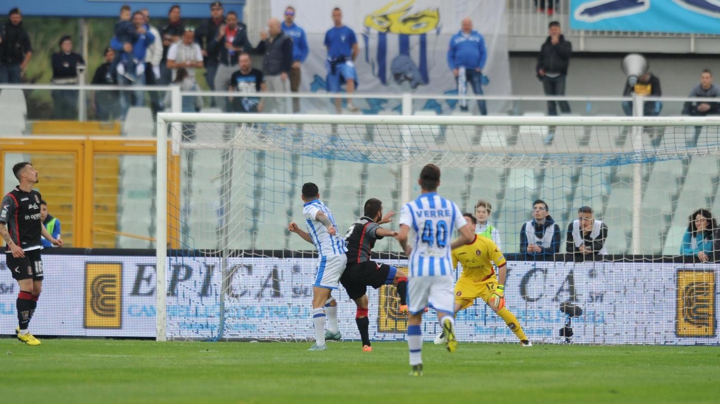 Il Pescara travolge con un netto 4-0 il Lanciano nel derby abruzzese e ottiene la matematica qualificazione ai playoff. Gli abruzzesi con 68 punti si portano a +7 sull’Entella a due turni dalla fine del campionato. Il Lanciano resta invece al terzultimo posto con 39 punti
