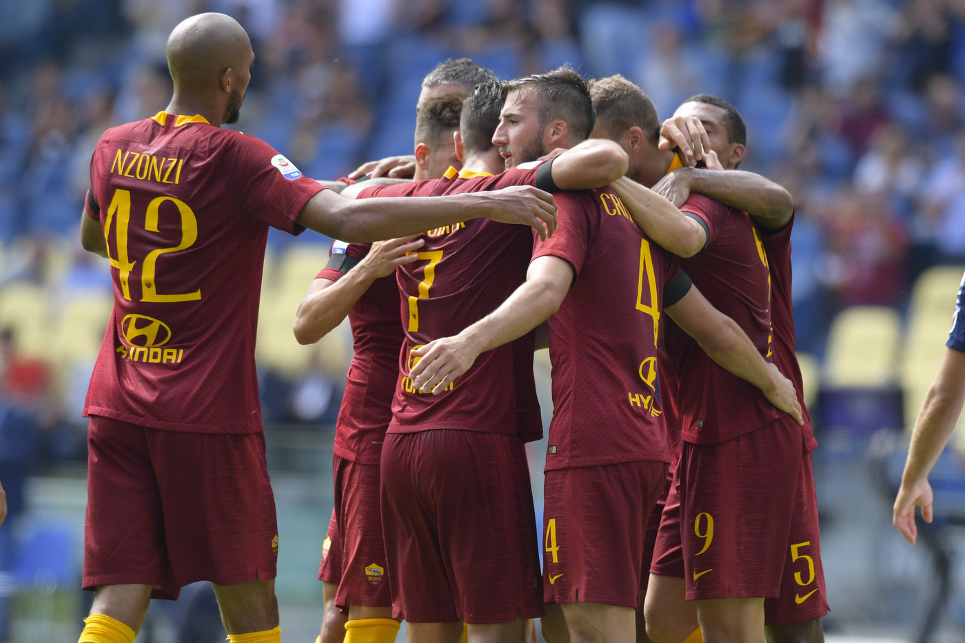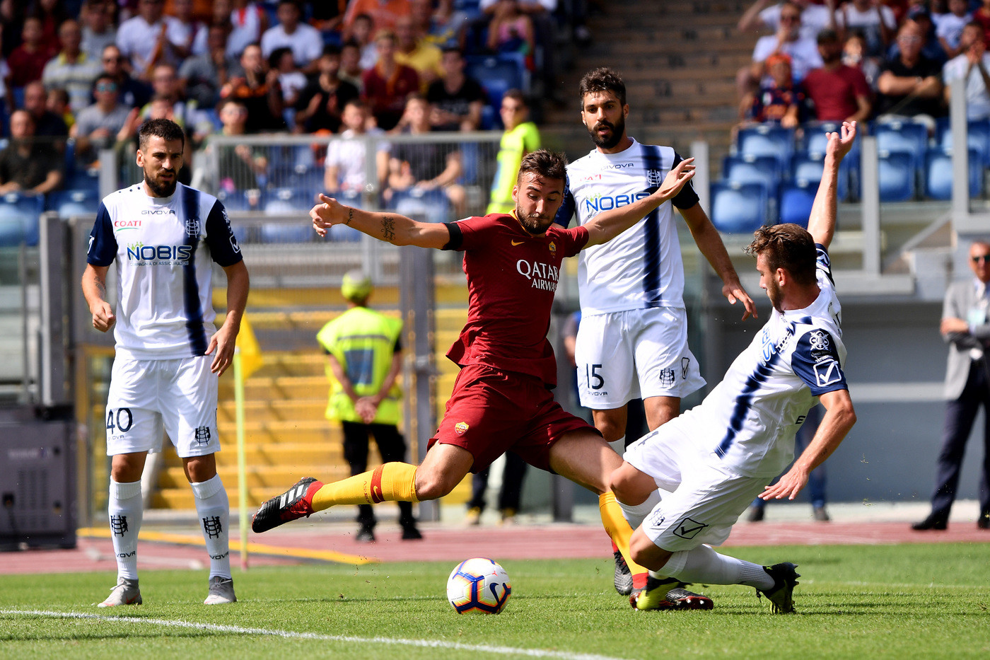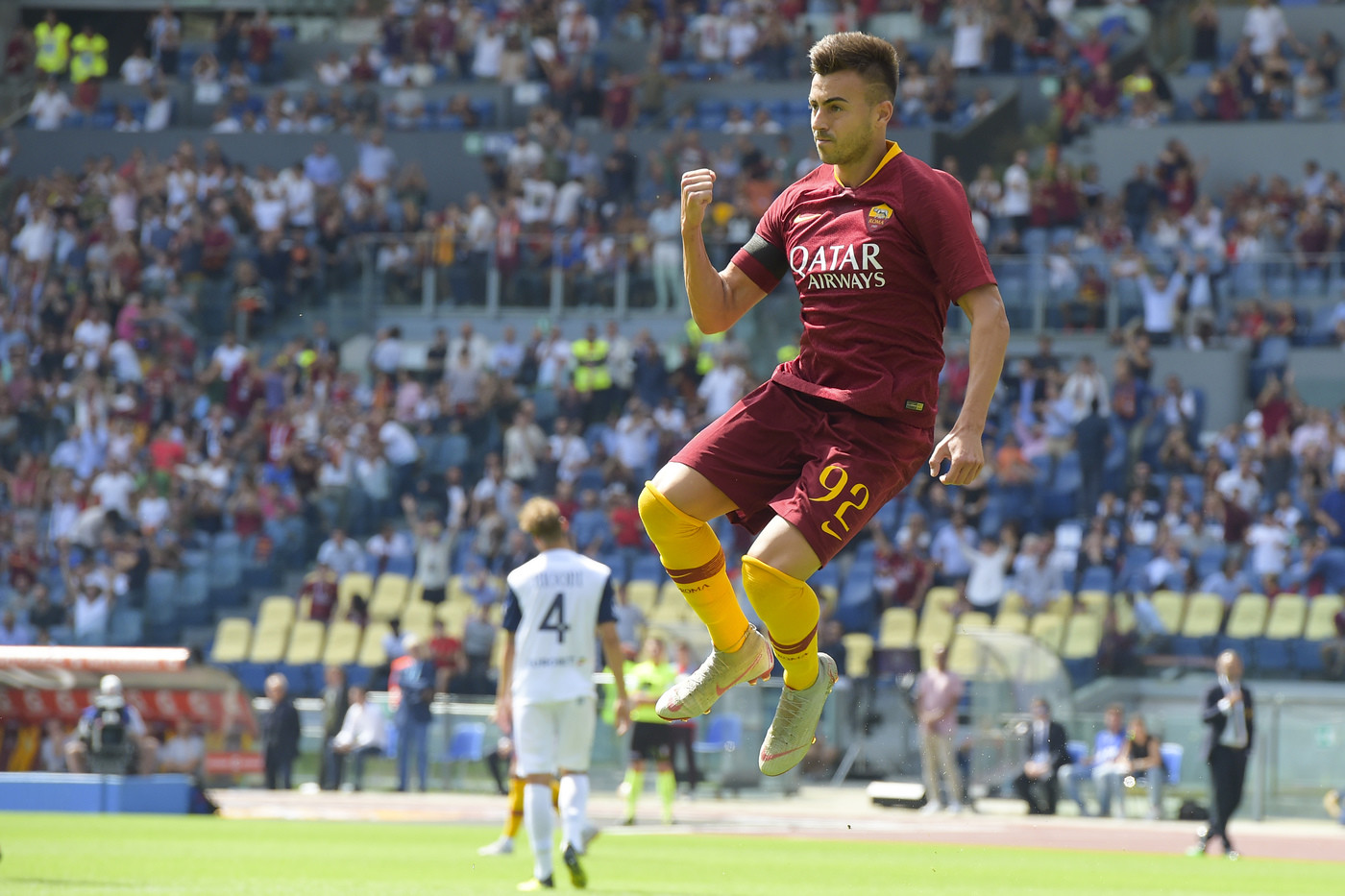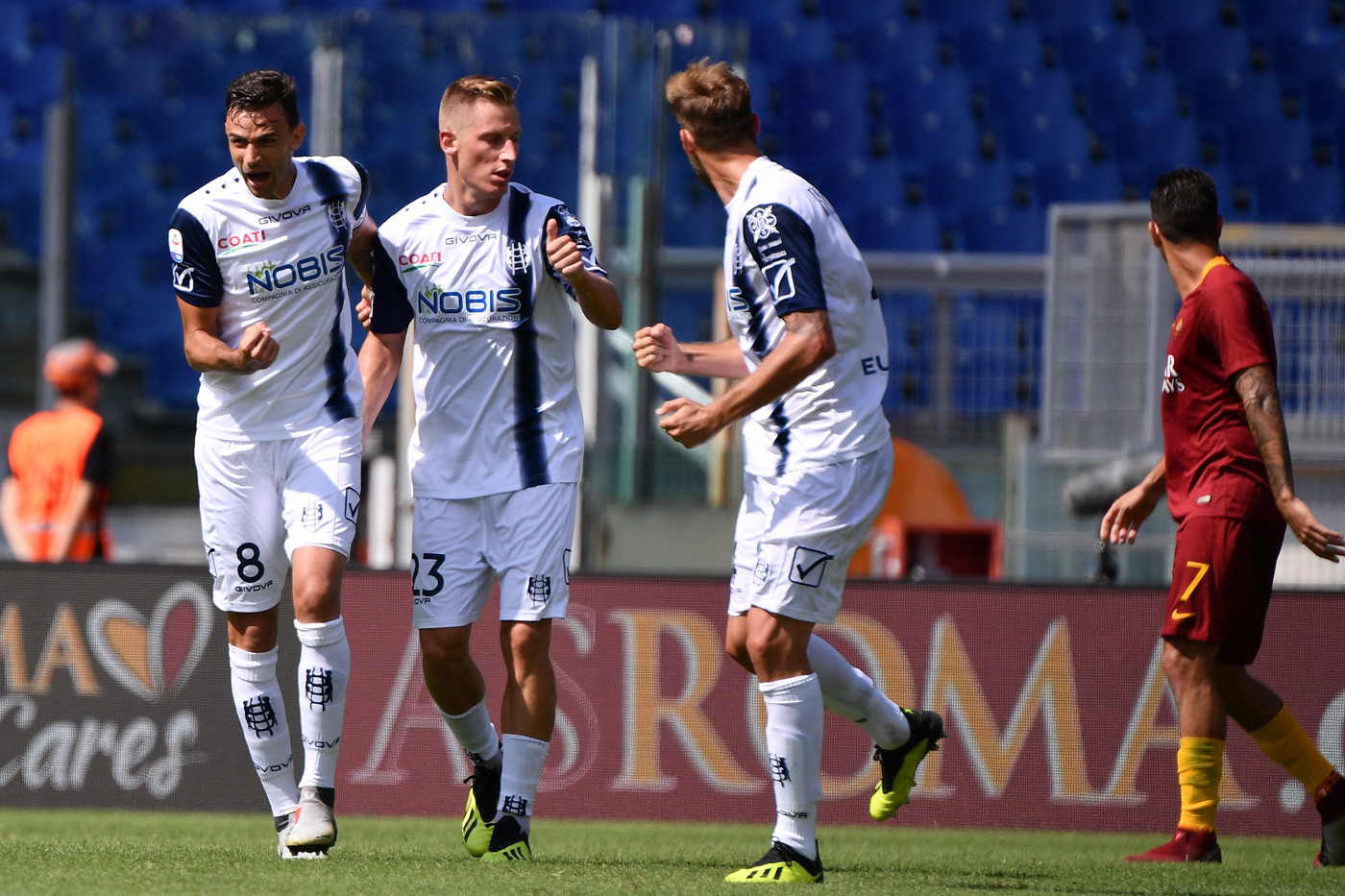 Home > Calcio > Serie A, Roma-Chievo 2-2 | Il fotoracconto Serie A, Roma-Chievo 2-2 | Il fotoracconto Lapresse 16 Settembre 2018, 12:41 As Roma, Chievo, Serie A La Roma ha pareggiato per 2-2 con il Chievo nell'anticipo della 4/a giornata di Serie A. I gol al 10' di El Shaarawy, al 30' di Cristante, al di 52' Birsa e all'83' di Stepinski. © Riproduzione Riservata
