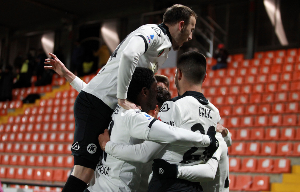 SPEZIA (4-3-3): Provedel; Vignali, Erlic, Ismajli, Bastoni S.; Estevez, Ricci, Maggiore (82′ Acampora); Saponara, Agudelo, Gyasi. A disp: Dell’Orco, Marchizza, Chabot, Ramos, Capradossi, Pobega, Agoume, Acampora, Sena, galabinov, Verde, Zoet. All. Italiano
