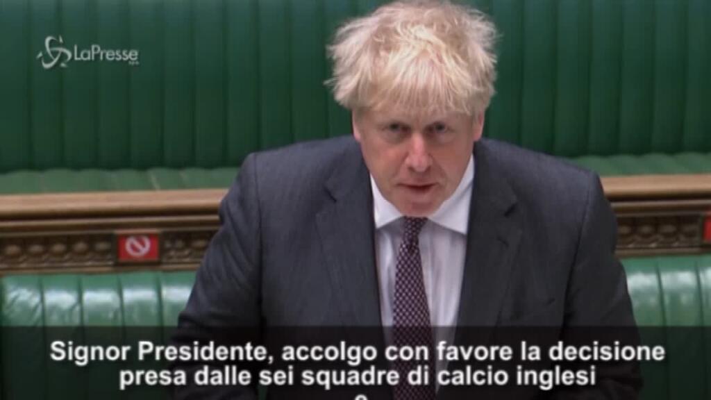 (LaPresse) “Accolgo favorevolmente la decisione delle sei squadre inglesi di non prendere parte alla Super League”. A dirlo è il premier britannico, Boris Johnson secondo cui si tratta di “un risultato giusto per i tifosi, per i club e per le comunità” che vivono nel Paese.