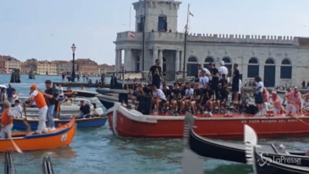 (LaPresse) Venezia festeggia il ritorno in Serie A della sua squadra dopo 19 anni. Una promozione guadagnata nella finale playoff contro il Cittadella che ha coronato il sogno dei lagunari. E se nelle altre città d’Italia le squadre di calcio sono abituate a festeggiare i propri successi sportivi con il classico giro in pullman, a Venezia la festa va in scena sul Canal Grande. Da piazzale Roma a San Marco, le imbarcazioni dei privati hanno accompagnato il passaggio dei ragazzi di Paolo Zanetti sotto il ponte di Rialto tra cori e canzoni.