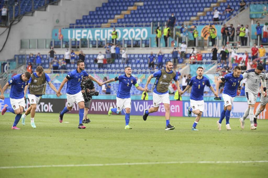 La Nazionale ribadisce il suo essere antirazzista ma contro l’Austria i giocatori quasi certamente resteranno in piedi prima del calcio d’inizio a Wembley. Non si ripeterà quindi la scena vista all’Olimpico contro il Galles, quando cinque Azzurri (Belotti, Bernardeschi, Emerson Palmieri, Toloi e Pessina) si unirono ai giocatori gallesi tutti compatti in ginocchio a sostegno del movimento ‘Black Lives Matter’. Alla vigilia degli ottavi di finale di Euro 2020, il capitano Leonardo Bonucci (Giorgio Chiellini è ancora fermo ai box) ha spiegato in conferenza stampa che “in hotel stasera faremo una riunione per decidere cosa fare. Se verrà fatta la richiesta ne parleremo, se c’è la volontà da parte di tutti”. Dal canto suo il ct Roberto Mancini ha ribadito: “Io sono qui per giocare, la cosa più importante per me è la libertà. Sempre”.