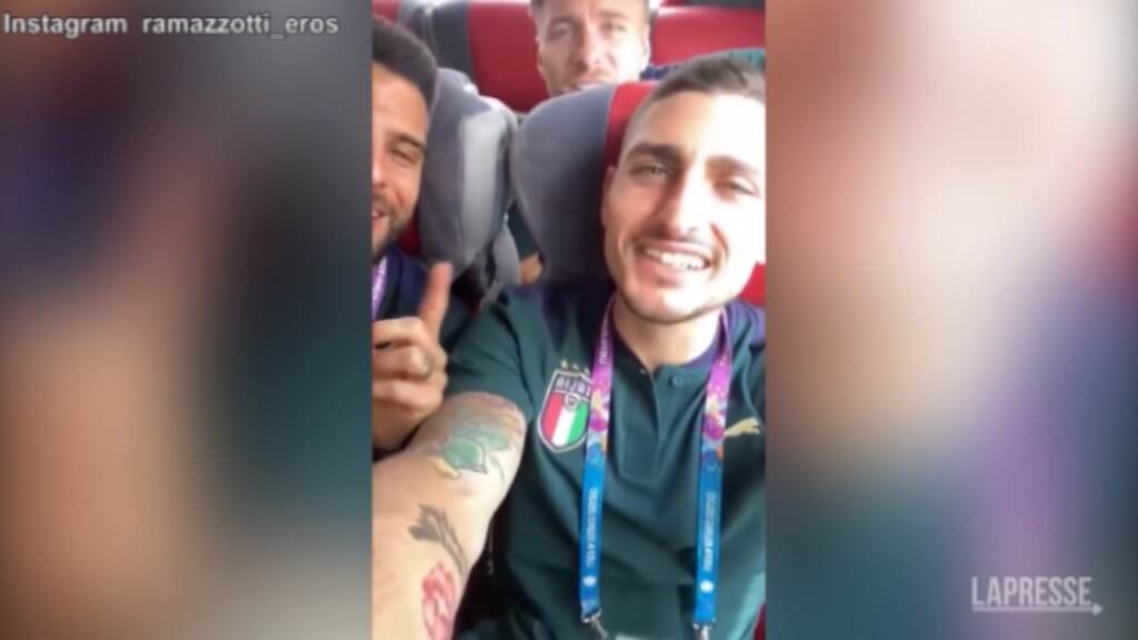 Gli azzurri stemperano le tensioni del pre-partita cantando a squarciagola durante un trasferimento. Insigne, Verratti e compagni si riprendono in un video-selfie mentre sul pullman intonano ‘Più bella cosa’ di Eros Ramazzotti. Il filmato è stato pubblicato su Instagram dall’autore stesso della canzone, poche ore prima della partita di Euro 2020 tra Italia e Belgio, valida per i quarti di finale, in programma stasera alle 21 a Monaco di Baviera.