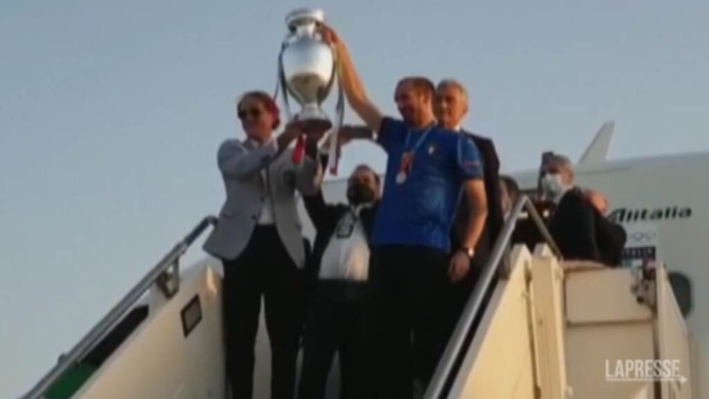 (LaPresse) La Nazionale italiana è atterrata a Roma all’aeroporto di Fiumicino dopo il trionfo nella finale dei campionato europei di calcio a Wembley contro l’Inghilterra. In seguito i ragazzi di Roberto Mancini sono giunti all’hotel Parco dei Principi, quartier generale azzurro a Roma. Ad attendere Giorgio Chiellini e compagni un nutrito gruppo di tifosi. Il capitano è sceso dal bus con una corona in testa. Nel pomeriggio la Nazionale sarà ricevuta al Quirinale dal Presidente della Repubblica, Sergio Mattarella, e a Palazzo Chigi dal premier Mario Draghi.