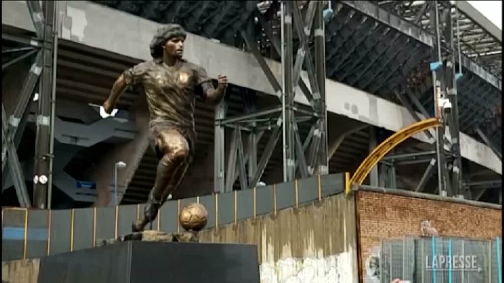 Ad un anno dalla morte di Diego Armando Maradona, davanti all’ex stadio San Paolo che oggi porta il suo nome, è stata posizionata una statua dell’indimenticato campione del Napoli. Centinaia di tifosi azzurri e del Boca Juniors, la squadra dove il Pibe de oro ha militato in Argentina agli esordi della carriera, hanno intonato cori e srotolato striscioni e bandiere.