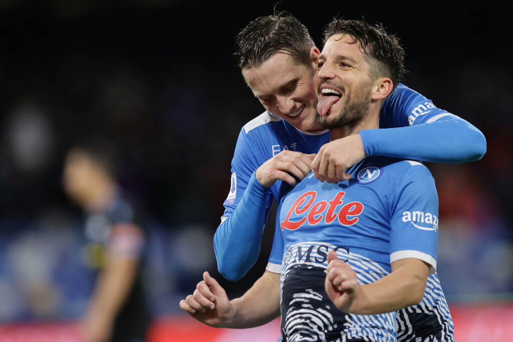 Forse è proprio così, è stata la mano di Maradona. Il Napoli nel giorno della celebrazione del mito si cala nei panni del suo campione più amato allestendo una partita perfetta di rara intensità emotiva, tutto genio, sregolatezza, ardore e spettacolo, travolgendo con un primo tempo sontuoso per inventiva e aggressività, la Lazio affossata di tre reti dopo neanche mezz’ora trascinata da un ispiratissimo Mertens autore di una doppietta e di numeri alla Maradona. Ci pensa poi Fabian Ruiz nel finale a calare il poker per un 4-0 che mortifica di colpo le ambizioni della squadra dell’ex Sarri. La formazione di Spalletti, sotto gli occhi del presidente della Fifa, Gianni Infantino, e di uno stadio innamorato che non ha nascosto l’emozione per il ‘Diez’ (al quale è stata dedicata nell’anniversario della sua morte, una statua che ha fatto il giro d’onore), ha mostrato ancora una volta la forza di un gruppo solido e compatto, pieno di fantasia e razionalità. La vittoria vale doppio perchè lancia il Napoli solitario in testa alla classifica staccando il Milan di tre punti e dando un segnale forte e chiaro all’Inter campione d’Italia, principale inseguitrice. Le favole vanno scritte bene e non è allora un caso se dopo il gol di Zielinski che al 7′ ha aperto le acque, la rete del raddoppio sia arrivata proprio al minuto numero 10, da parte del più ‘maradoniano’ dei calciatori di Spalletti. Mertens, l’uomo che ha superato il ‘Pibe de oro’ per numero di gol con la maglia azzurra, ha messo il timbro sulla sfida segnando prima la rete del raddoppio con una finta magistrale e un colpo a giro e poi al 29′ con un destro al volo di rara bellezza che ha impressionato lo stesso Spalletti. Mertens, che nella notte magica al ‘Maradona’ ha preso il posto dell’infortuinato Osimhen, sale a 105 gol in serie A, 139 con la maglia del cklub partenopeo. Ora più lanciato che mai. Per l’ex Sarri un ko pesante che rischia di lasciare strascichi psicologici. Non perdeva due partite consecutive dal marzo scorso.