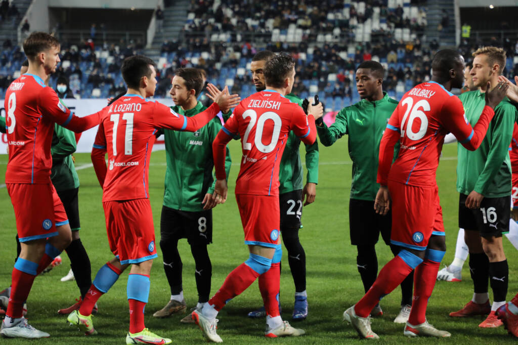 Anche a causa degli infortuni di Osimhen e Anguissa, il tecnico del Napoli non fa turn over e conferma gli stessi undici della sfida contro la Lazio con Mertens titolare supportato da Lozano, Zielinski e Insigne. In panchina torna Politano dopo l’assenza per la positività al Covid. Nel Sassuolo Dionisi cambia tre difensori rispetto alla trasferta contro il Milan schierando titolari Toljan, Chiches e Rogerio al posto di Muldur, Ayhan e Kyriakopoulos. In campo Berardi, Scamacca e Raspadori. Traoré titolare per Matheus Henrique. Il Napoli, dopo i primi minuti di studio, prova ad alzare il baricentro, giocando stabilmente nella metà campo avversaria ma non riesce ad imporre la sua qualità e il suo gioco con fluidità. Merito di un Sassuolo attento e propositivo che si costruisce la prima occasione all’11’ con Frattesi che arriva in leggero ritardo su un lancio di Traorè. I partenopei non hanno la stessa carica esplosiva ed emotiva mostrata contro la Lazio ma con il passare dei minuti aumenta il pressing a centrocampo provando a velocizzare il gioco. La prima fiammata è di Zielinski che a poco passi dalla porta non dosa bene la forza del proprio tiro che finisce in curva. Ci prova poi Insigne che sulla sinistra conduce palla fino all’area avversaria, riesce a resistere al ritorno di Berardi e conclude con la punta del piede in porta impegnando Consigli con una non facile parata a terra con la mano sinistra: il Napoli sembra aver preso ritmo ma il Sassuolo conferma le sue qualità e compattezza. E’ dei neroverdi l’ultima vera occasione del primo tempo su angolo di Berardi, respinta di Kouliakly e conclusione con il sinistro di Ferrari con Ospina attento che neutralizza a terra.