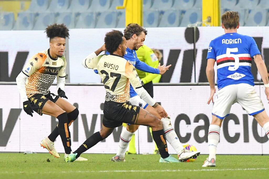 Nei secondi quarantacinque minuti la Samp rischia di raddoppiare subito. Candreva mette al centro un cross perfetto per Thorsby che stacca di testa, ma manda il pallone sul fondo. La risposta degli ospiti arriva al 53′, quando Kiyine serve Aramu: la sua conclusione non trova lo specchio della porta. Girandola di cambi a mezz’ora dal fischio finale: Zanetti lancia in campo Vacca ed Henry, D’Aversa concede trenta minuti a Dragusin e Verre. Al 63′, però, l’ennesima occasione del match è ancora una volta dei blucerchiati: Verre conclude da fuori e trova la respinta corta di Romero. Sul tap-in si avventa Throsby che sbaglia, calciando alto sulla traversa. Dieci minuti più tardi il trio Thorsby-Candreva-Caputo manda in tilt la retroguardia di Zanetti, ma i padroni di casa peccano di cinismo sotto porta. A tredici minuti dal termine è il turno del neo entrato Quagliarella, subito pericoloso con un diagonale che termina di poco fuori. Il Venezia si accende a dieci minuti dal termine: contropiede portato avanti da Ebuehi, che serve in area Sigurdsson. Pallone in mezzo non sfruttato per un soffio da Henry. E’ solo il preludio al gol del pari che arriva all’87’, a tempo quasi scaduto: Hery punta Yoshida e fa partire un destro imparabile per Audero che vale l’1-1 finale.