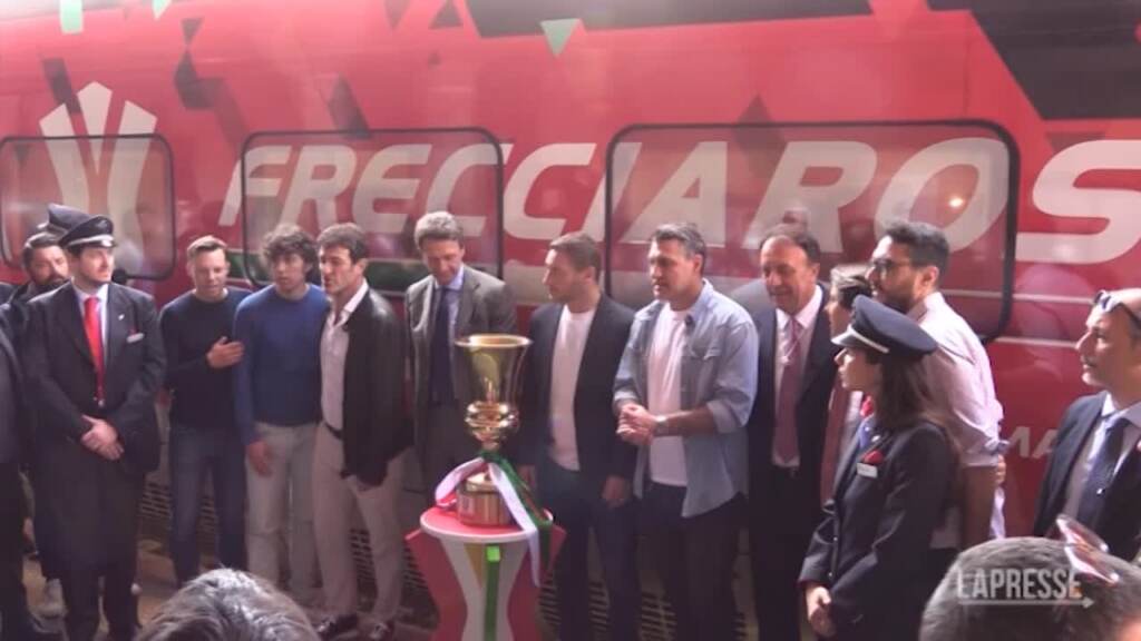 (LaPresse) Un Frecciarossa 1000 con la livrea della Coppa Italia e i nomi delle squadre finaliste, da martedì mattina corre sui binari dell’alta velocità tra Roma e Milano. Alla cerimonia, sul binario 1 della Stazione Termini erano presenti tre testimonial d’eccezione: Francesco Totti, Christian Vieri e Ciro Ferrara accolti dall’Ad di Trenitalia, Luigi Corradi. “Trenitalia da sempre supporta il calcio e lo sport e siamo orgogliosi di farlo”, ha spiegato Corradi incalzato da francesco Totti: “Domani sarà una partita veloce”.