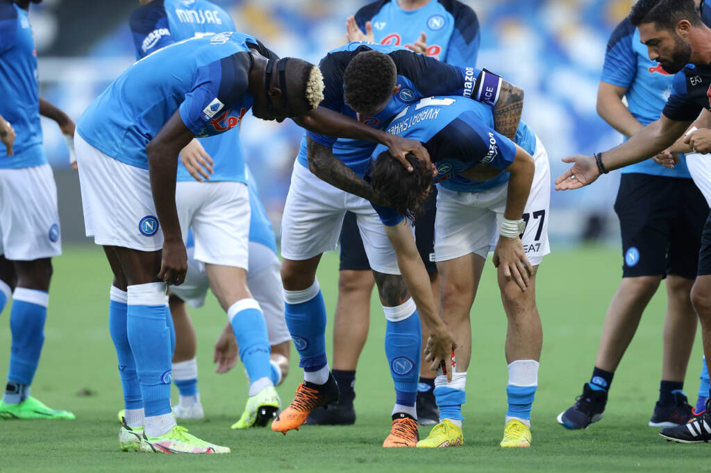 La nuova stella del Napoli si chiama Kvaratskhelia. Al debutto al Maradona in campionato sigla una doppietta, dopo aver già segnato nella prima giornata, e fa innamorare i tifosi partenopei che invece dovranno attendere per vedere in azione i nuovi acquisti, Simeone e Raspadori, oggi rimasti in panchina. Poco male per gli azzurri, che dominano il Monza per tutti i 90 minuti e chiudono la pratica 4-0, con i gol anche di Osimhen e Kim. A Napoli l’ad dei brianzoli, Adriano Galliani, in mattinata ha fatto visita al murales di Maradona, portando in dono una maglia del Monza con il numero dieci e una sciarpa.