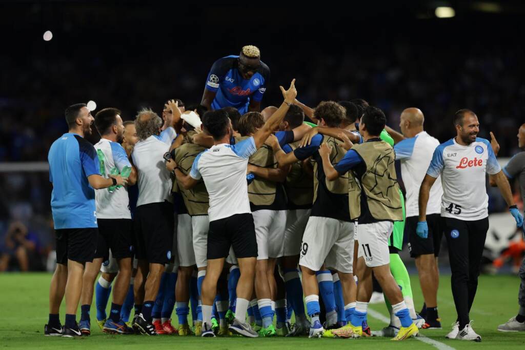 Il Napoli schianta 4-1 il Liverpool nella prima giornata della fase a gironi di Champions League. Dominio azzurro nei primi 45′: a segno Zielinski su rigore al 5′, Anguissa al 31′ su assist proprio del polacco e Simeone al 44′ a porta sguarnita sul cross di Kvaratskhelia. In precedenza Osimhen aveva sbagliato un calcio di rigore sul punteggio di 1-0. In avvio ripresa ancora Zielinski firma il poker, prima del 4-1 definitivo di Luis Diaz al 4′.