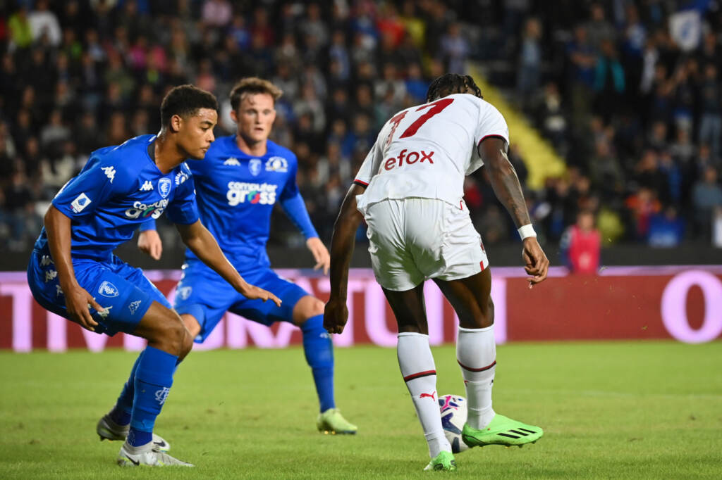 Serve un Milan più incisivo e meno lezioso per sfondare il muro dell’Empoli che invece ad inizio ripresa mostra maggiore fiducia che aumenta con il passare dei minuti. Capisce che il Diavolo arrivato al ‘Castellani’ non fa così paura e con coraggio si fa vedere spesso nell’area rossonera. La squadra di Pioli non è brillante, fatica a costruire, appare spenta e lenta in fase di costruzione. Ha bisogno delle accelerazioni di Leao affidandosi anche alle qualità dei singoli. Giroud scheggia la traversa su punizione, Tonali con un tiro secco da fuori area calcia non di molto lontan dal palo. Al 64′ serve il miglior Vicario con per respingere una deviazione della barriera su una punizione sbilenca del mediano rossonero. Pioli, che ha un solo slot disponibile per i cambi, sostituisce uno spento De Ketelaere per Diaz, Kjaer (probabile stiramento) per Dest e Rebic per Giroud. Serve una scossa che però tarda ad arrivare anche perché l’Empoli continua a farsi pericolosa. Il pallone de Diavolo corre piano e ci si affida solo ad interpreti individuali. Il guizzo vincente arriva al 79′ e tutto nasce dai piedi di Leao che si libera in area su una rimessa lunga, palla per Rebic che da due passi insacca il gol del vantaggio. Il Milan cerca di gestire ma si fa sorprendere da una punizione di Bajrami al 92′. Un colpo che avrebbe piagato molte squadre ma non il Milan che due minuti dopo trova la rete con Ballo Touré (prima rete in rossoenro) e al 96′ cala anche il tris con una galoppata trionfale di Leao. Una vittoria sofferta mai forse così preziosa.
