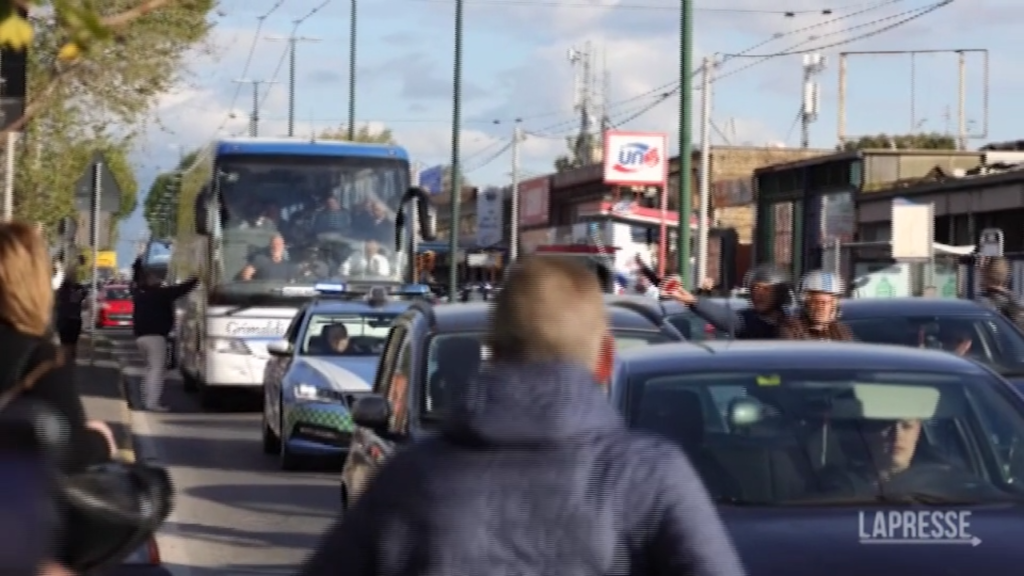Il Napoli in partenza per Udine, dove domani sera scenderà in campo alle 20.45. La squadra di Spalletti ha un secondo match point scudetto stasera, in caso di sconfitta o pareggio della Lazio, altrimenti domani le basterà un solo punto per la vittoria. Ad accompagnare il pullman decine di tifosi del Napoli, pronti per la festa scudetto.