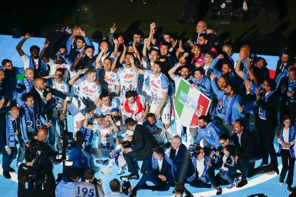 “Al popolo napoletano voglio solo dire che non deve preoccuparsi del futuro. Io sono qui da otto anni e sento sempre parlare di chi va via e di chi rimane. Io dico che nelle mani di Aurelio De Laurentiis non ci sarà mai un problema e sarà sempre un grande Napoli”. Lo ha detto il direttore sportivo del Napoli Cristiano Giuntoli parlando al ‘Maradona’ durante la festa scudetto dei neo campioni d’Italia. Il discorso del dirigente è stato introdotto da una premessa del presidente che ha ricordato come “abbiamo iniziato un ciclo, dobbiamo ripetere, ripetere, ripetere, vincere, vincere, vincere”.