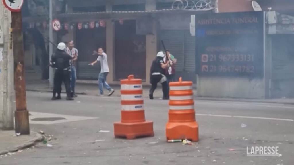 Scontri a Rio de Janeiro tra tifosi della Fluminense e la polizia, prima della finale di Coppa Libertadores. La gara, disputata allo stadio ‘Maracanà’, ha visto la squadra brasiliana imporsi 2-1 sugli argentini del Boca Juniors ai tempi supplementari. Decisivo il gol realizzato da John Kennedy.