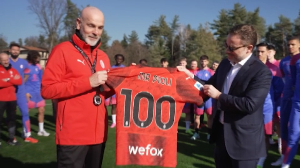 L’amministratore delegato del Milan Giorgio Furlani ha consegnato Stefano Pioli una speciale medaglia per le cento vittorie in serie A conquistate sotto la guida dell’attuale tecnico rossonero. Il traguardo è stato raggiunto conquistando i tre punti nella sfida contro l’Udinese dello scorso 20 gennaio. La squadra ha reso omaggio all’allenatore con una maglia autografata anche da tutto lo staff. Alla cerimonia, che si è svolta a Milanello, erano presenti anche Zlatan Ibrahimovic, Geoffrey Moncada e Antonio D’Ottavio.