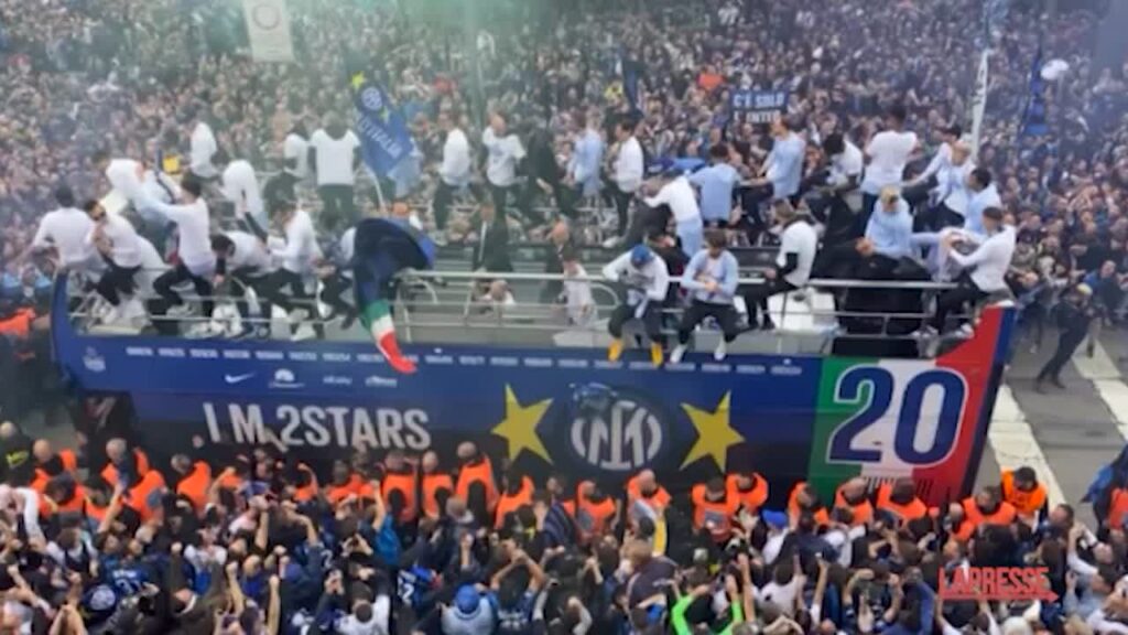 Dopo il successo ottenuto sul Torino (2-0) in campionato, è ufficialmente iniziata la festa Scudetto dell’Inter. I due bus scoperti, uno con a bordo i giocatori, l’altro con lo staff di Simone Inzaghi, sono partiti da San Siro per celebrare la seconda stella conquistata dal club nerazzurro. Ad attendere i campioni d’Italia fuori dallo stadio migliaia di tifosi in festa tra bandiere, cori e striscioni. Il percorso, di circa 8 km lungo le vie di Milano, prevede l’arrivo dei due pullman in Duomo, dove si sono già radunati migliaia di sostenitori dell’Inter. Ecco le immagini, viste dall’alto, del bagno di folla che accompagna l’Inter nella sua parata per le strade della città.