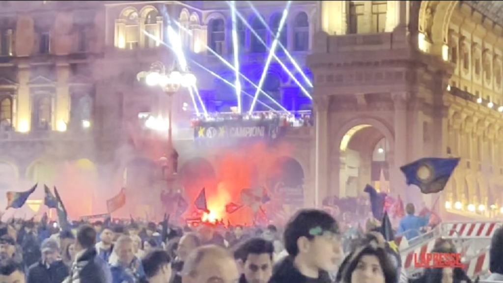 Sono durati fino a notte fonda, a Milano, i festeggiamenti dei tifosi dell’Inter per la conquista dello scudetto, il 20esimo nella storia del club nerazzurro. Almeno 300mila persone hanno invaso le strade del capoluogo lombardo per celebrare la squadra, artefice di un campionato straordinario. I tifosi si sono riversati poi in Piazza Duomo per aspettare l’arrivo di giocatori, staff tecnico e dirigenza, dopo la tradizionale parata sui bus scoperti, per il saluto dalla Terrazza Duomo 21.