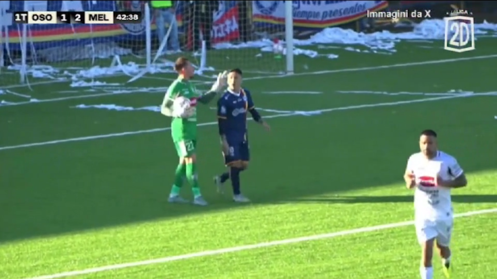 Clamoroso in Cile, dove in una partita del campionato locale di seconda divisione è stato assegnato un calcio di rigore a dir poco discutibile. Il portiere della squadra ospite, il Deportes Melipilla, ha sfiorato con un buffetto l’attaccante del Provincial Osorno. L’arbitro ha assegnato la massima punizione ai padroni di casa, che in quel momento stavano perdendo 2-1 e hanno così pareggiato (la partita è finita 3-3). Accese polemiche per la decisione arbitrale.