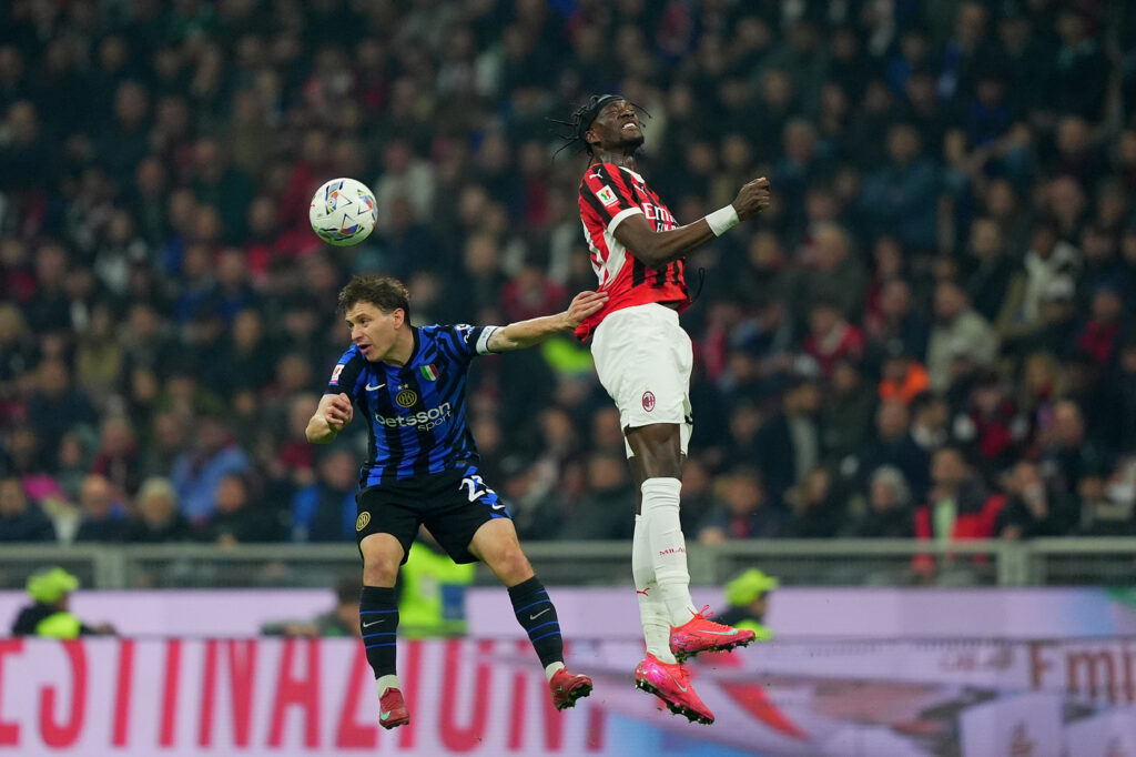 Si gioca con grande vigoria e non mancano gli scontri in mezzo al campo, con l’arbitro costretto spesso ad intervenire per riportare la calma. Al 20′ Inter vicinissima al gol con un colpo di testa ravvicinato di De Vrij, in mischia, respinto praticamente sulla linea da Abraham. Poco prima della mezzora si accende Leao, che entra in area da sinistra e impegna Martinez con un diagonale mancino potente ma centrale. Poco dopo la mezzora altra chance in contropiede per il Milan con Pulisic che innesca Abraham in area, provvidenziale Martinez in uscita con i piedi. La risposta nerazzurra con una punizione dai 30 metri di Calhanoglu respinta in angolo da Maignan. Poco prima dell’intervallo grande occasione per l’Inter, con Thuram che serve in area l’accorrente Frattesi che di testa impegna Maignan. Sulla prosecuzione dell’azione è Bastoni a svirgolare di sinistro tutto solo in mezzo all’area di rigore. Scampato il pericolo, il Milan sblocca il risultato in avvio di ripresa con un diagonale vincente di Abraham favorito da un rimpallo al limite dell’area tra Fofana e un avversario. San Siro si scalda, l’Inter prova subito a reagire con un destro a giro dal limite di Barella sventato da Maignan.