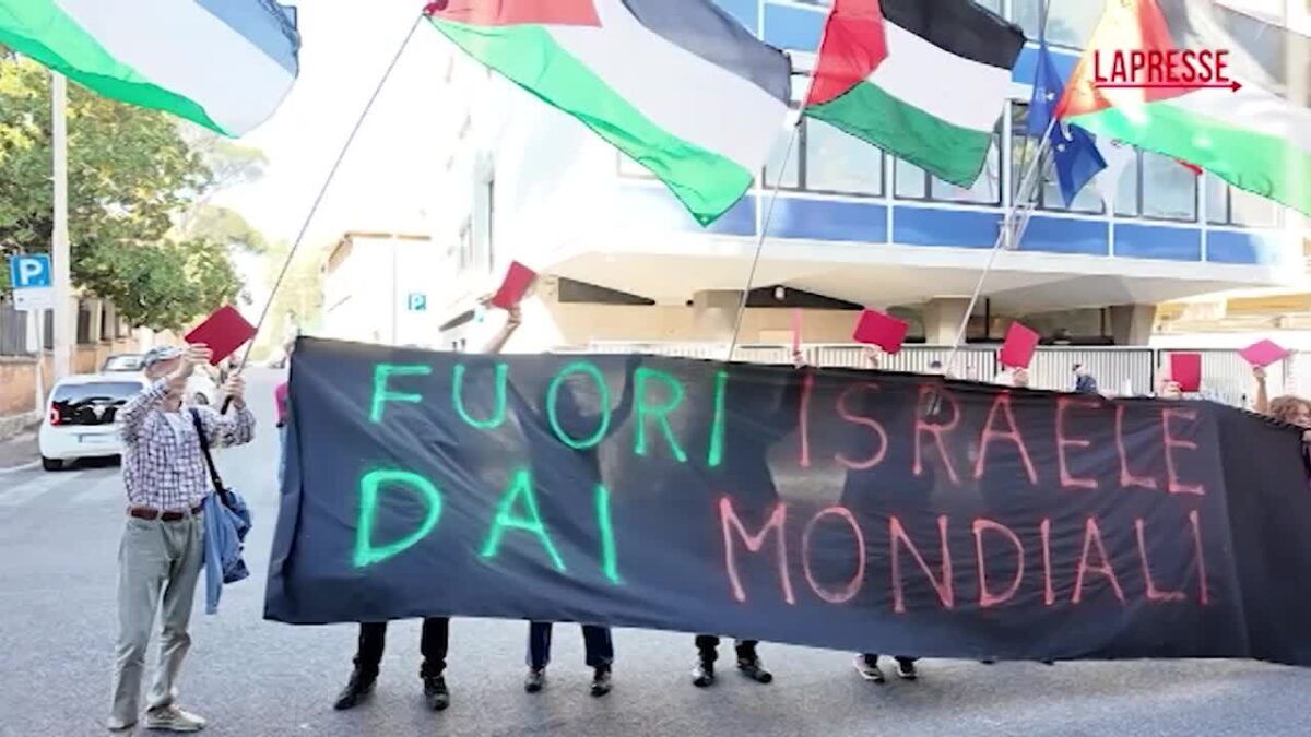 (LaPresse) Uno striscione con la scritta: “Fuori Israele dai Mondiali” e dei cartellini rossi per chiedere l’espulsione della squadra dalle competizioni sportive internazionali. Con questo obiettivo una ventina di manifestanti si sono radunati davanti alla sede della Federazione Italiana Giuoco Calcio a Roma per protestare contro la partita di calcio Italia-Israele che si giocherà stasera a Udine e valevole per la qualificazione ai prossimi campionati del mondo. “La compagine di calcio israeliana fa parte di quello che viene chiamato sport-washing, un modo per ripulire con lo sport l’immagine di uno stato che ha commesso un genocidio” dice un manifestante. “Se i pesi fossero uguali per tutti così come non si fanno giocare i russi con la loro bandiera così si dovrebbe fare per Israele”. “Non ci hanno pensato due giorni per espellere altre nazioni” dice uno degli organizzatori al megafono, “invece non sono bastati due anni di occupazione e genocidio per espellere l’entità sionista dai mondiali. Due pesi e due misure da parte dell’Occidente”.