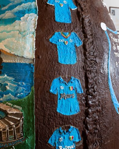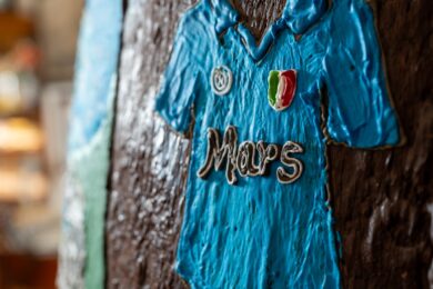 “Il calcio a Napoli va ben oltre la semplice dimensione agonistica, è una passione che si rinnova ad ogni partita e che unisce tifosi di ogni generazione. Le vittorie sofferte, i quattro scudetti conquistati, i grandi calciatori, allenatori e presidenti che hanno portato la squadra al successo sono stati motivo di orgoglio, rinascita e riscatto per l’intera città”, dichiara Sveva Maglietta, membro del cda di Gay-Odin. “Con l’uovo gigante vogliamo unirci ai festeggiamenti del Centenario che nei prossimi mesi vedranno protagonista il Calcio Napoli. Il nostro vuole essere un omaggio a chi fa battere all’unisono il cuore dei tifosi e della città intera. Tre anni fa abbiamo dedicato l’uovo gigante al grande Massimo Troisi e al suo ‘Scusate il Ritardo’, il film-profezia con il quale l’attore augurò al Napoli di aggiudicarsi un nuovo scudetto, il terzo vinto poi a maggio 2023 dopo ben 33 anni e al quale ne è seguito anche un quarto. Dedichiamo questa scultura di cioccolato al presidente De Laurentiis, ai calciatori, all’allenatore e a tutti i tifosi con la speranza che l’uovo, da sempre simbolo di vita, rinascita e fertilità, possa essere di buon auspicio per il futuro calcistico della nostra squadra”.