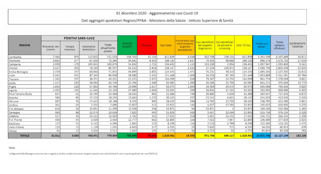 Salgono ancora le vittime di covid in Italia, oggi sono 785, una cifra che torna ad aumentare dopo il calo di qualche giorno fa. I nuovi casi sono 19.350 mentre i tamponi sono 182.100: il tasso positivi-test è al 10,6%. Calano le terapie intensive di 81 unità, calano i ricoveri in generale: -376. Il totale delle vittime sale così a quota 56.361 mentre il totale dei casi a 1.620.901.