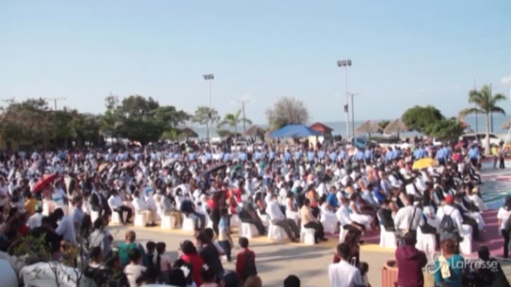 Sfidando il caldo e il rischio di contrarre il coronavirus, 400 coppie si sono sposate il 14 febbraio durante una cerimonia di massa in Nicaragua. Si tratta di un evento, organizzato da una stazione radio locale, che si ripete ogni San Valentino da 18 anni nella capitale Managua. Le coppie, accompagnate da familiari e amici, hanno firmato domenica i documenti legali e poi si sono radunate all’aperto davanti al municipio di Managua, dove sei giudici e un notaio hanno ufficializzato l’unione.