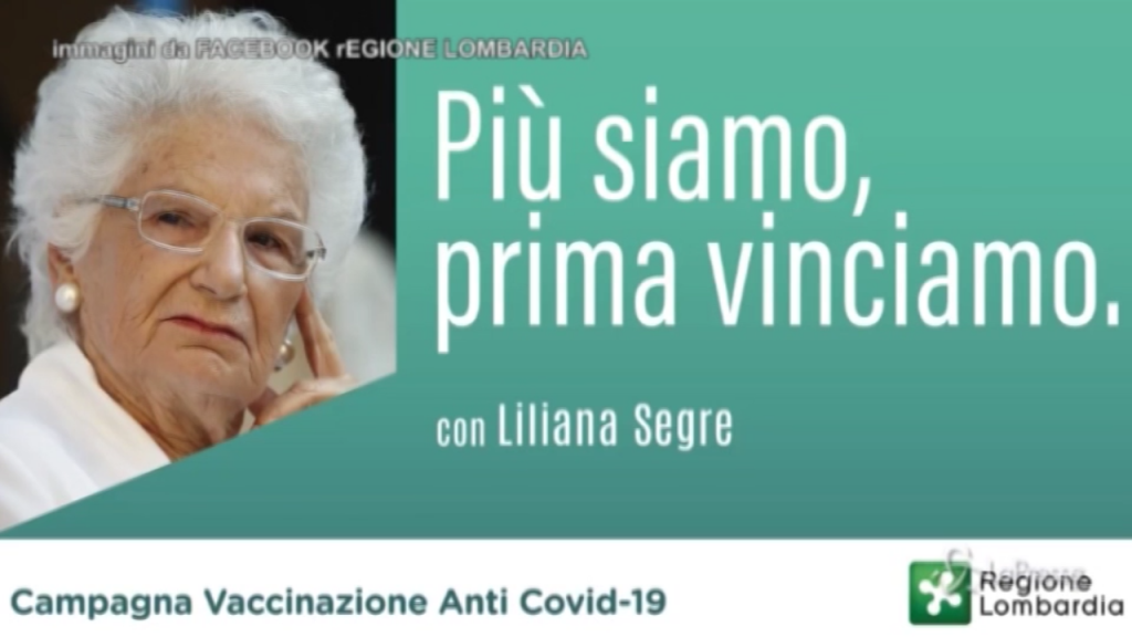 (LaPresse) La senatrice a vita Liliana Segre è ‘testimonial’ della campagna di vaccinazione in Lombardia. In un video diffuso da Regione Lombardia la senatrice, 90enne, invita a vaccinarsi: “Abbiamo così poche armi contro questo nemico invisibile che essere vaccinati vorrà dire essere visitati dai figli e dai nostri nipoti e amici che hanno paura di incontrarci. E’ una grande opportunità a cui tutti dobbiamo rispondere, grati che si possa fare perché in alcuni stati non è possibile farlo”, ha aggiunto. DISTRIBUTION FREE OF CHARGE