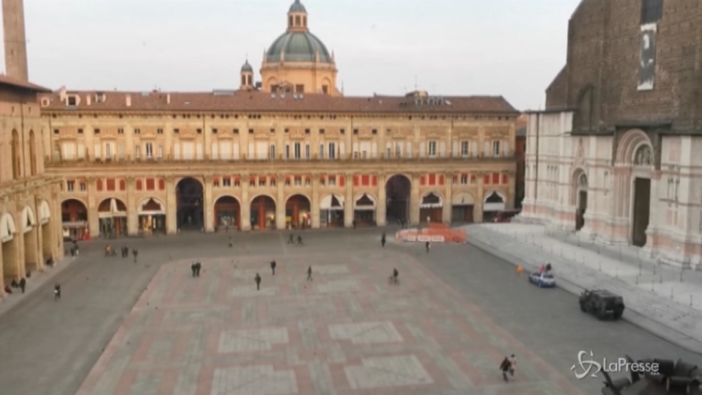 Il temuto primo giorno di zona rossa a Bologna è arrivato ed è arrivato in una giornata di sole. Già in mattinata poche persone tra il “crescentone” di piazza Maggiore e la fontana del Nettuno nonostante il bel tempo. All’incrocio della cosiddetta T – via Rizzoli, dell’Indipendenza e Ugo Bassi – la Polizia Municipale effettua qualche controllo soprattutto a chi si muove in scooter: i controlli ci saranno anche nel pomeriggio. Dopo le 16 Bologna non è una città deserta come nel primo lockdown, ma la cittadinanza sembra aver accolto l’appello del sindaco ed è disciplinata: anche nel pomeriggio, dalla terrazza della Sala Rosa e dalla finestra della Sala Farnese di Palazzo d’Accursio dalle quali si sovrastano piazza del Nettuno e piazza Maggiore sono poche le persone che passeggiano. Anche in via D’Azeglio, dove campeggiano le luminarie con il testo di “Futura” di Lucio Dalla – che oggi avrebbe compiuto 78 anni – è semi deserta. Pochi fedeli anche alla messa delle cinque cattedrale di san Pietro, in via Indipendenza. Molte le serrande abbassate e i cartelli che danno appuntamento per ora al 23 di marzo. Più intensi i controlli in zona universitaria, in via Zamboni, Petroni e piazza Verdi. Praticamente vuota anche piazza Santo Stefano.