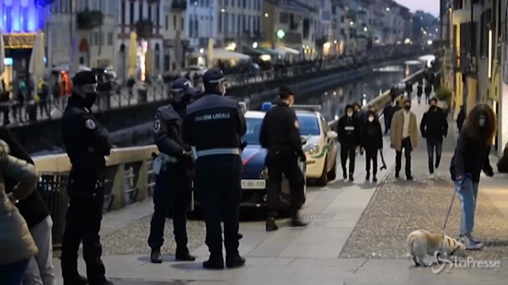 (LaPresse) Ingressi contingentati e controlli di polizia e carabinieri in Darsena a Milano. Tante le persone che si sono riversate sui Navigli per la domenica in ‘arancione rafforzato’, forse complice il bel tempo dopo un sabato di pioggia. Nel pomeriggio sono intervenute le forze dell’ordine per monitorare la situazione, in qualche caso con l’aiuto delle transenne. Tanti i giovani che si sono ritrovati per il rito dell’aperitivo, anche se d’asporto.