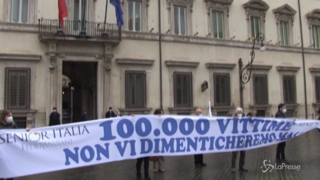 Un presidio davanti a Palazzo Chigi, organizzato da Senior Italia Federanziani per ricordare le 100 mila vittime italiane del Covid 19. Alla manifestazione hanno partecipato, oltre alla delegazione dell’associazione, la vice presidente del Senato, Paola Taverna e il sottosegretario al Ministero della Salute, Pierpaolo Sileri. “Ogni giorno siamo anestetizzati dal bollettino ufficiale dei morti”, ha detto Roberto Messina, presidente di Senior Italia: “Questi centomila morti sono tanti quanti ne hanno causati tutti i terremoti e la Seconda Guerra Mondiale. Per loro un raccoglimento forte e un pensiero alle loro famiglie”.