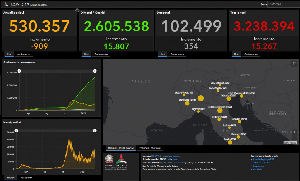 Calano ancora i nuovi casi di coronavirus in Italia nelle ultime 24 ore: sono 15.267 i nuovi positivi su 179.015 tamponi processati – quasi la metà della media delle ultime settimane e 95 mila in meno rispetto a ieri-, con un tasso di positività all’8,5%. Aumentano però i decessi: sono 354 quelli delle ultime ore. E’ boom nei reparti ordinari, che segnano 820 ricoveri in più, mentre le terapie intensive contano 75 ingressi giornalieri, nel saldo tra nuovi accessi e dimissioni.