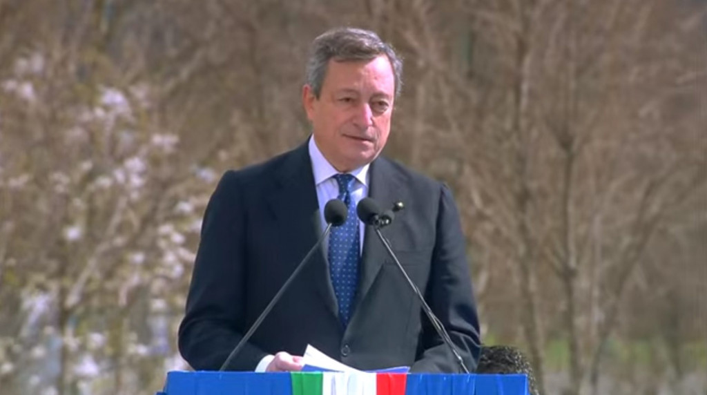 Il presidente del Consiglio Mario Draghi è arrivato a Bergamo per celebrare le vittime dell’epidemia da coronavirus e per la deposizione di una corona di fiori al Cimitero monumentale della città simbolo della prima ondata, dove ha osservato il minuto di silenzio davanti alla lapide dedicata alle vittime. Una voce fuori campo ha letto la poesia scolpita sulla lapide scritta da Ernesto Olivero, presidente del Sermig, Servizio missionario giovani.