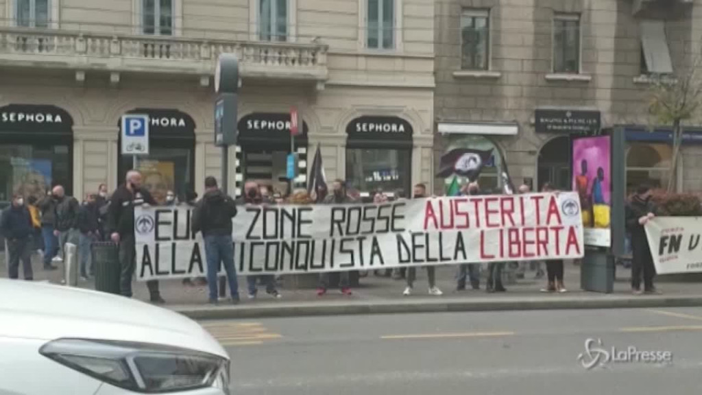(LaPresse) Circa una cinquantina di militanti del movimento di estrema destra Forza Nuova hanno protestato in piazzale Loreto, a Milano, contro la “dittatura sanitaria” ed esponendo striscioni con le scritte “Vicini alle famiglia italiane” e “No dad, no mascherina, no lockdown. Scuola libera”.